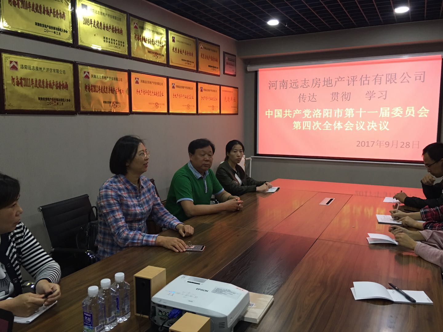 2017年9月28日,河南遠志房地產(chǎn)評估有限公司,召開專題會議,組織全體員工傳達、貫徹、學(xué)習(xí)《中國***黨洛陽市第十一屆委員會第四次全體會議決議》。